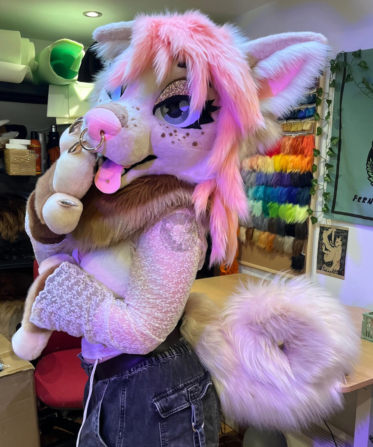 Example: Indoor feet, Over 2 fur colours, Additional flesh colour, Stripes, spots, Complex markings, pose-able tongue, Piercings, Extra eyelids, hair, extra zippers, pockets. Extra parts can also be discussed.